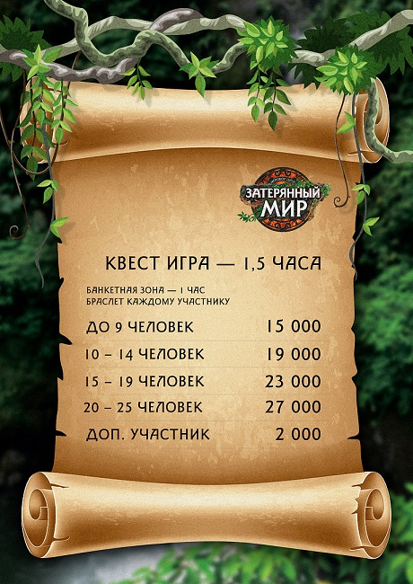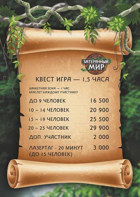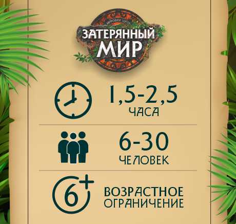 Отправиться в захватывающее путешествие, не выезжая из города? С квестом «Затерянный мир» это стало возможным. Собирайте команду отважных друзей и отправляйтесь в мир, полный загадок и приключений.